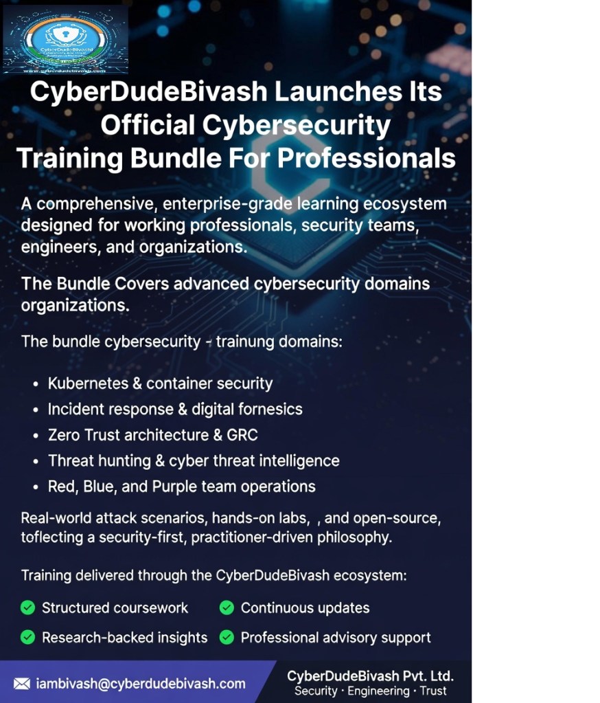 CyberDudeBivash is proud to announce the launch of its Official Cybersecurity Training Bundle, a comprehensive, enterprise-grade learning and capability-building ecosystem designed for working professionals, security teams, engineers, and organizations worldwide.